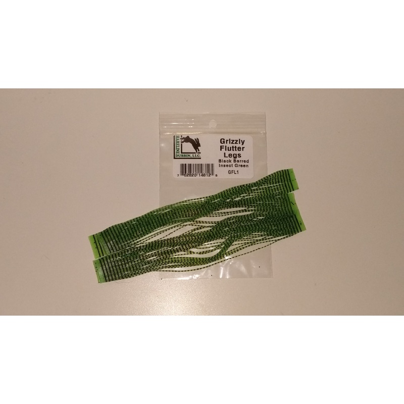 Made of silicone and extremely buggy, Hareline’s grizzly flutter legs are barred on both sides and flutters on any current. Used on streamers and bass flies to create more action on the water.