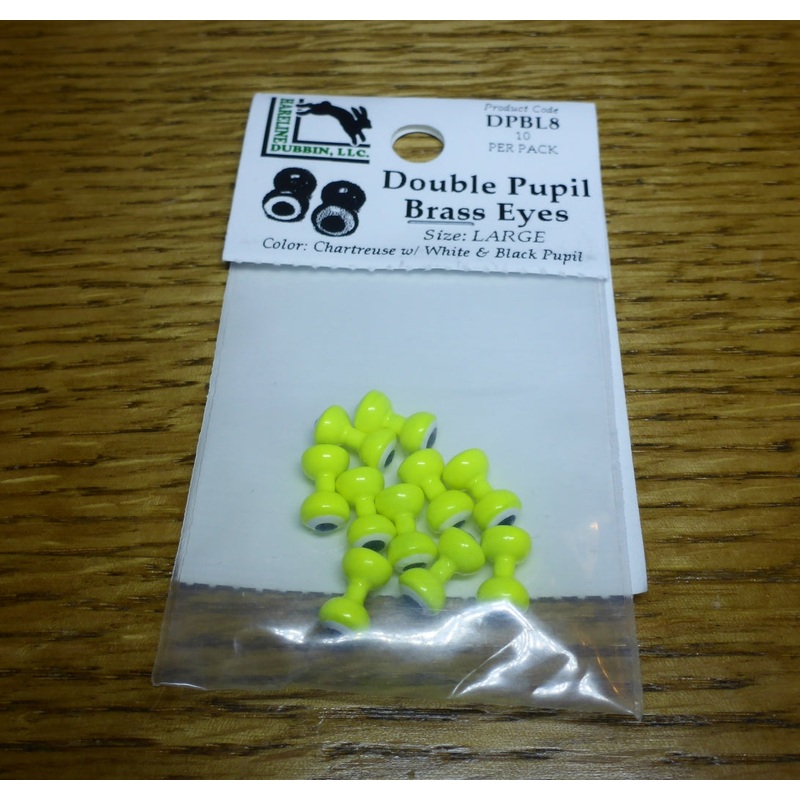 Add them to your streamers and clouser patterns. They really bring an extra level of pop to your flies. Great color options for trout, bass, saltwater, salmon, and steelhead flies. These great looking eyes have very prominent pupils which we feel is important in baitfish patterns. The Hareline Double Pupil Brass Eyes are a bit lighter than the lead version so be aware of that when choosing a size.