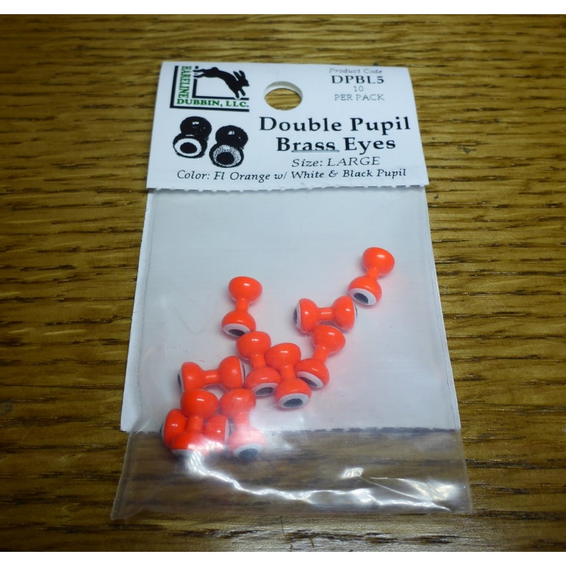 Add them to your streamers and clouser patterns. They really bring an extra level of pop to your flies. Great color options for trout, bass, saltwater, salmon, and steelhead flies. These great looking eyes have very prominent pupils which we feel is important in baitfish patterns. The Hareline Double Pupil Brass Eyes are a bit lighter than the lead version so be aware of that when choosing a size.