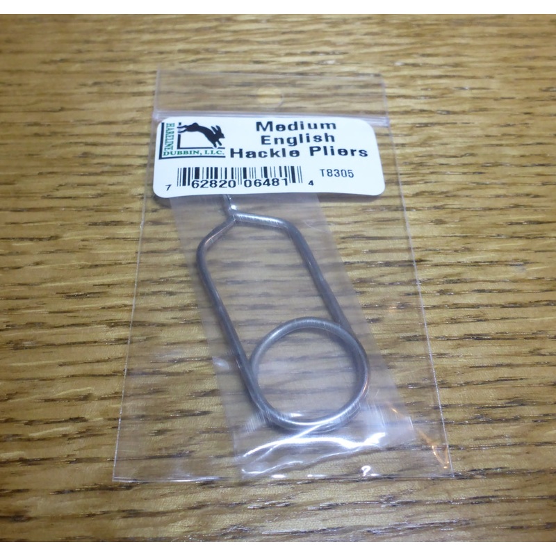 The traditional tool, of highest quality, the Hareline English hackle pliers are available in 3 sizes. The large (2 3/4 inch long) and medium (2 3/8 inch) sizes have long serrated tips and the small (1 7/8 inch) size has short tips.