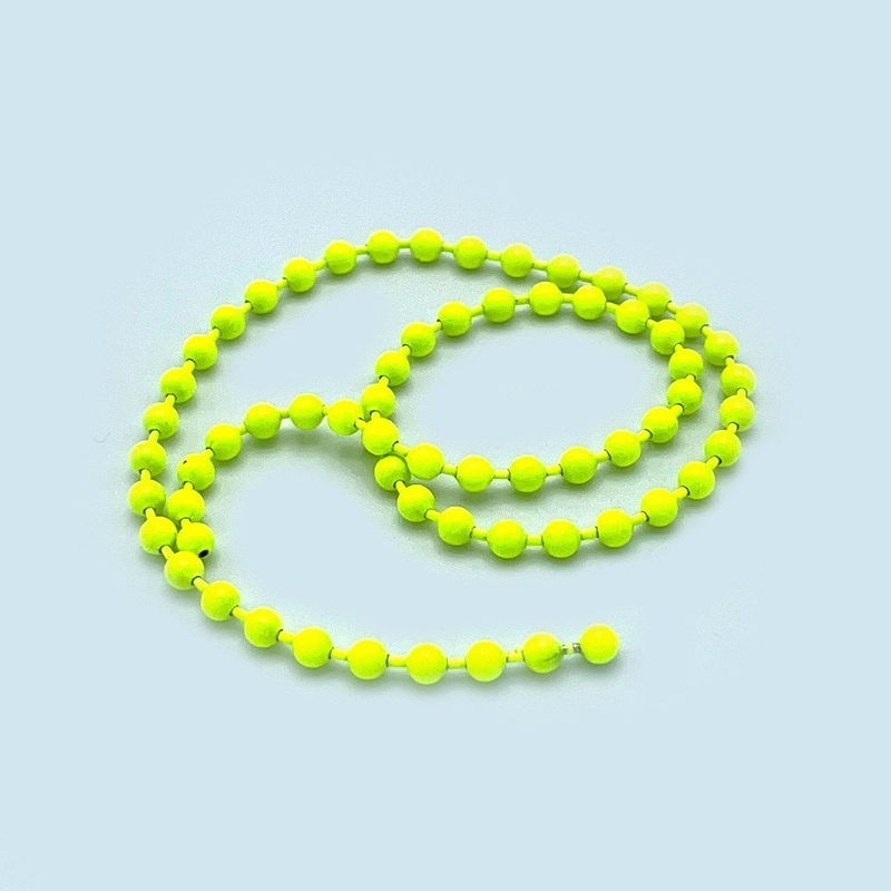 Hareline’s fluorescent bead chain eyes add a pop of color to your freshwater and saltwater patterns. These 3.2mm diameter eyes are perfect for trout, salmon, steelhead, bonefish, bass and much more. Also great for crab and shrimp patterns! Simply snip the beads off of the chain and tie them on your hook shank for some awesome looking eyes. Available in your choice of 5 bright fluorescent colors!