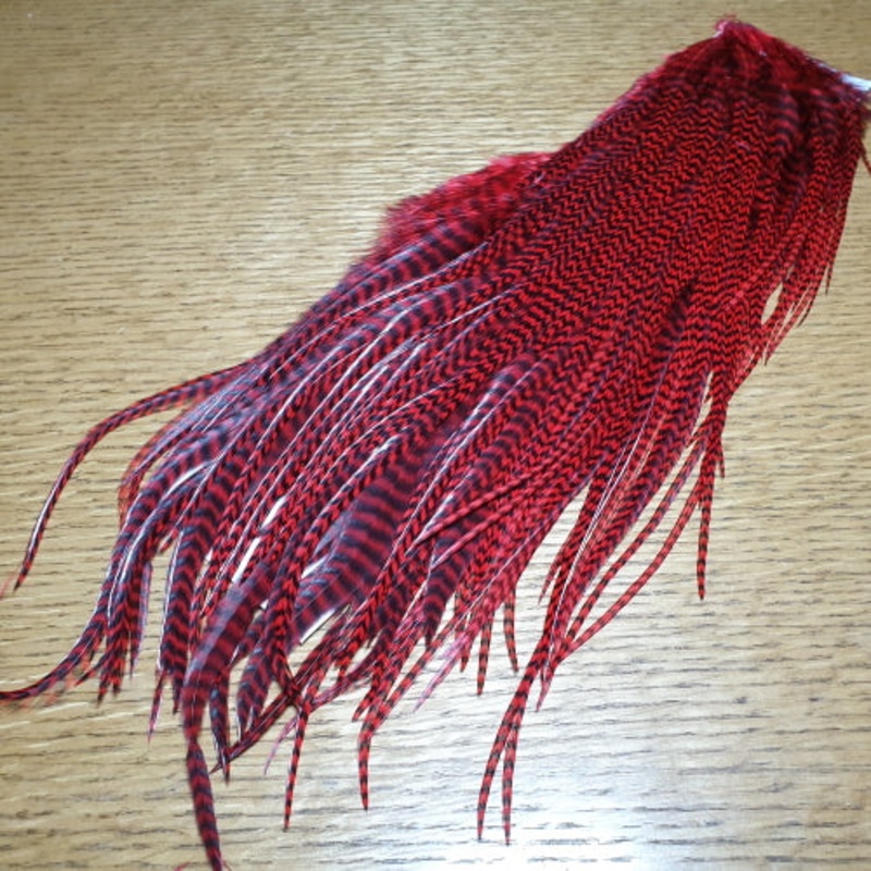 Hareline Grizzly Half Saddle represent a very nice grade #2 half saddle from Keough Hackles. These come with long, narrow feathers, that are ideal for trout, salmon, saltwater and native flies. Available in natural grizzly and dyed colors over the natural.