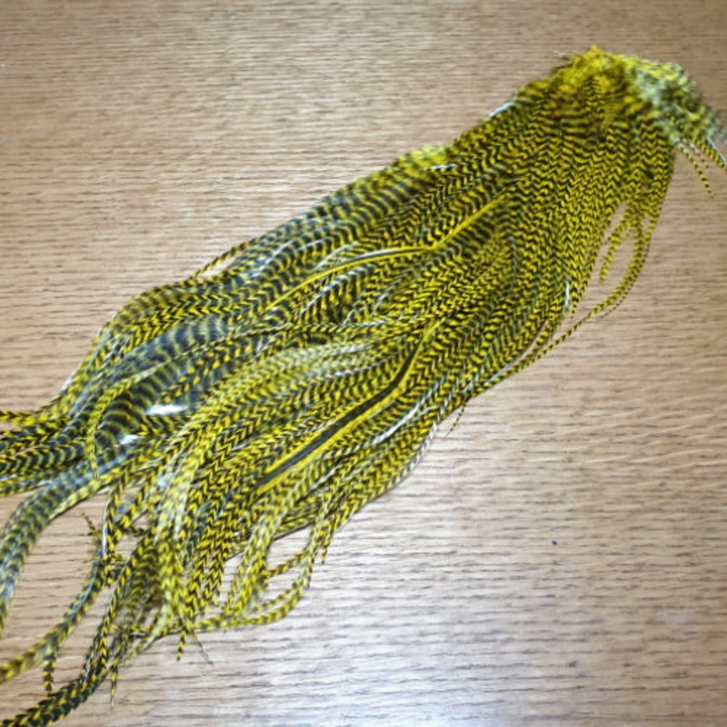 Hareline Grizzly Half Saddle represent a very nice grade #2 half saddle from Keough Hackles. These come with long, narrow feathers, that are ideal for trout, salmon, saltwater and native flies. Available in natural grizzly and dyed colors over the natural.
