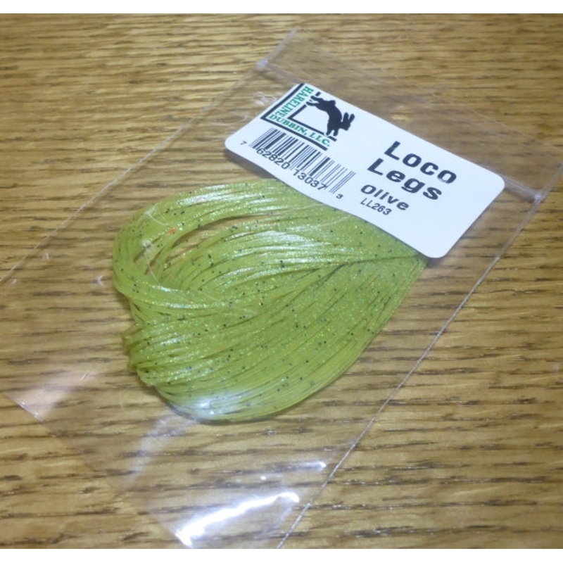 Hareline Loco Legs are a more lifelike silicone leg with dark flecks and pearlescent background colors make these your best choice for patterns from bass to saltwater flies. These are very translucent rubber legs intended for the saltwater market, but have great possibilities for subtle hints on clear water Intruders. The little tiny black dots along the length of the rubber give Hareline Loco Legs a real fishy appearance.