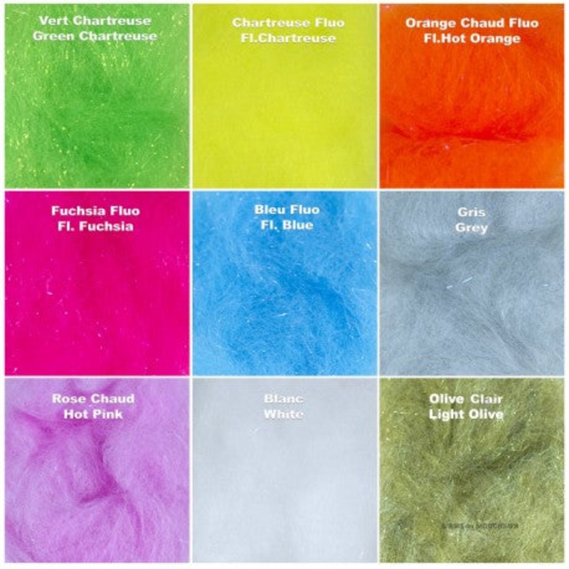 It is a mix of Ice Dub and 3/4″ to 1″ acrylic staple fiber. A must for Salmon/Steelhead patterns.