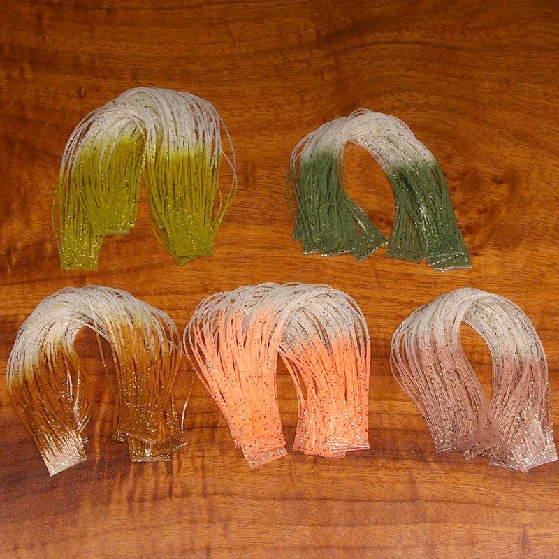 Hareline’s Shrimpy Crabby Legs are thin, translucent silicone legs with coloration that will match the hatch on the flats. With clear middles and contrasting colored tips, shrimpy crabby legs give a hot spot for fish to target in on. If that wasn’t enough, these legs feature embedded black and gold speckled flakes that add a lifelike appearance and flash. Use them for shrimp, crab, streamers, stonefly nymph, larger dry flies and more. Excellent for targeting bonefish, permit, redfish and many other fresh and saltwater species. Also great for tying bass jig skirts. With so many uses…you can’t go wrong with Shrimpy Crabby Legs!