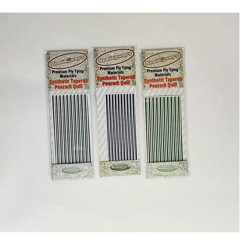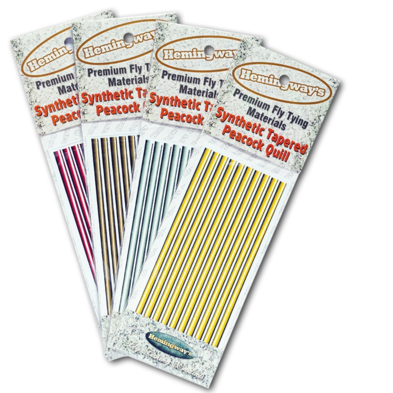 - Hemingway’s Synthetic Tapered Peacock Quills are made from a very thin self-adhesive flexible vinyl based material.