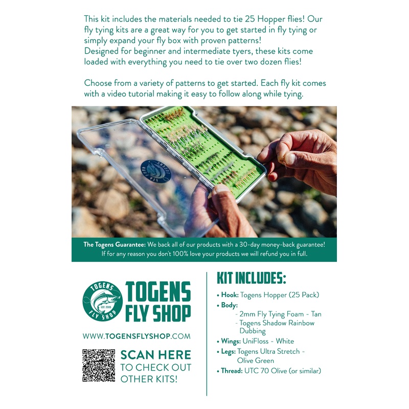 This kit includes the materials needed to tie 25 Hopper Flies! Our kits are a great way for you to get started in fly tying or simply expand your fly box with proven patterns! Designed for beginner and intermediate tyers, these kits come loaded with everything you need to tie over two dozen flies!