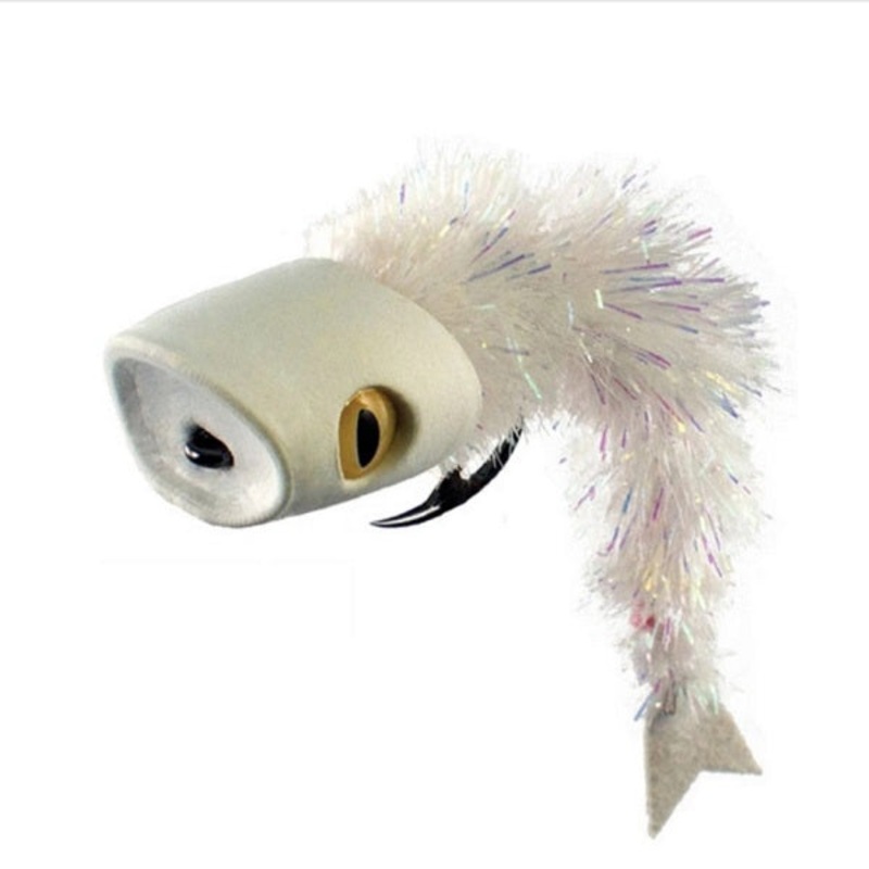 The Howitzer imitates the head of a small minnow (or baitfish) that is splashing and sipping at the surface of the water. It’s designed with a deep recess at the back of the head so that an articulated body and tail of a minnow can be embedded seamlessly into the back of the head. As a result, the body of the minnow hangs down in the water (roughly at a 45-degree angle) and moves enticingly in a positionthat can be seen by predatory fish from a longdistance and offersthem an irresistible profile and an easy opportunity for a meal!