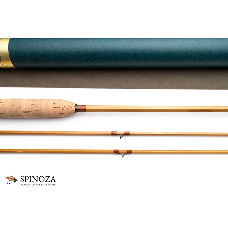 A nice Jenkins GA-79 model bamboo fly rod, 7’9″, 2-piece, 2-tip, and built for a #5 line. “GA79-10″ inked on the shaft. The rod weighs 4.1 ounces on my scale. Nice medium-fast action. Near mint condition with a few tiny reel foot impressions in the reel seat spacer but very few signs of real use. The rod could not have been fished much, and perhaps only lawn cast. The rod is pin straight. Three up node pattern construction and the cane is a light wheatstraw color with a nice and somewhat thin coat of varnish. Wrapped brown throughout with gold tipping. Small hoop keeper and a carbide stripper with black snakes and tip tops. Oxidized swiss style ferrules with the oxidation 99% intact. The grip is 6” long and shaped to a blunt cigar profile. The front cork check is oxidized, while the rear is bright along with the cap and ring reel seat hardware. The spacer is a mortised and lightly varnished cherry. The bottom of the cap has “The Jenkins Rod” lightly engraved into it. The rod packs into a brown cloth bag and a black frost coated aluminum tube with gold anodized aluminum hardware. Nice rod.