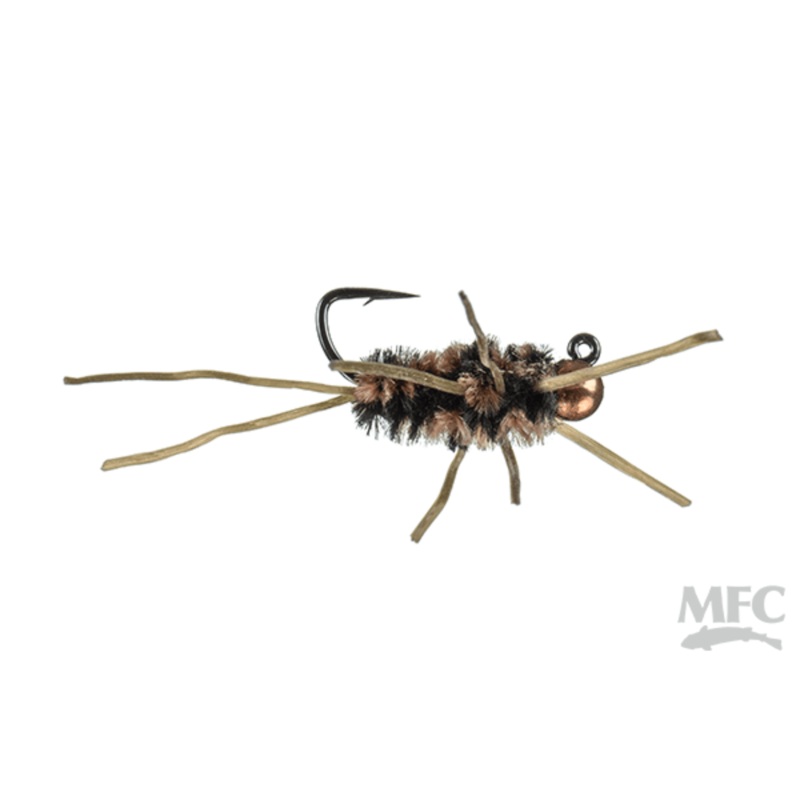 A stonefly tied on a robust jig hook presents itself underwater in a horizontal fashion, perfect for high sticking or fished under an indicator. Since the hook point is riding up your less likely to snag on rocks.