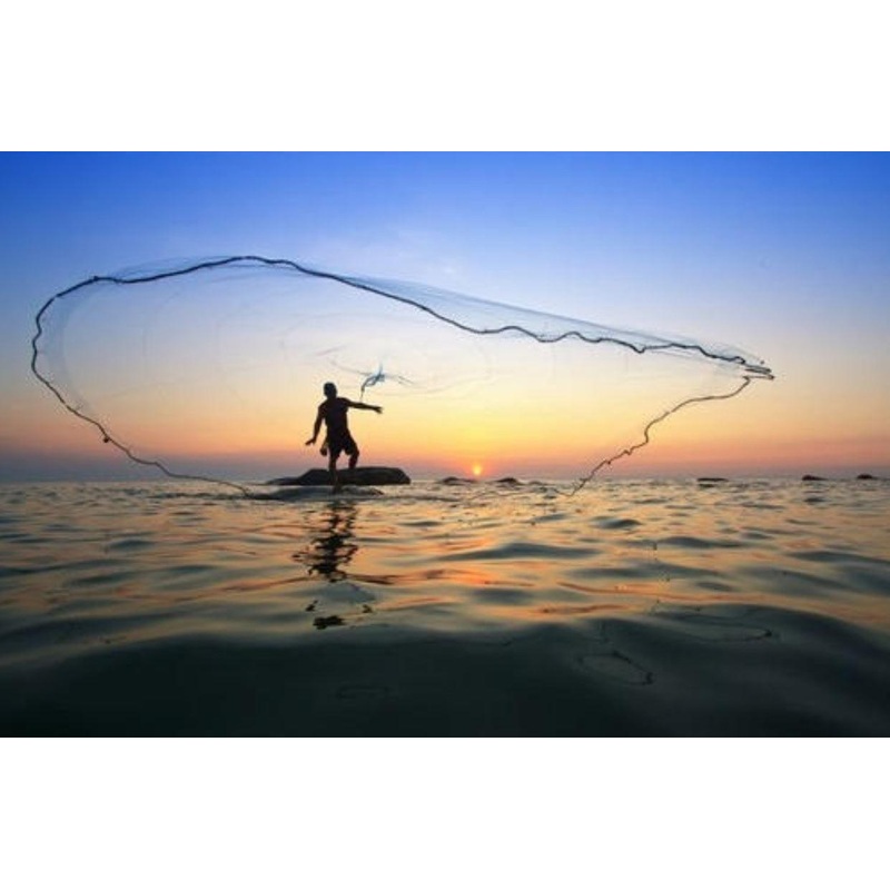 Kastes for hnd. Nettet synker ned som en sirkelformet kjegle og strammes i bunn ved inntrekk slik at all fisk i garnet blir med opp. Kastenett til fangst av agnfisk. Leveres i praktisk oppbevaringsbtte med hank.