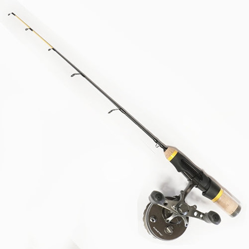 Ett isfiskeset frn kinetic som kommer med en frikopplingsbar centerpinrulle och ett sp med en mjuk, knslig topp.