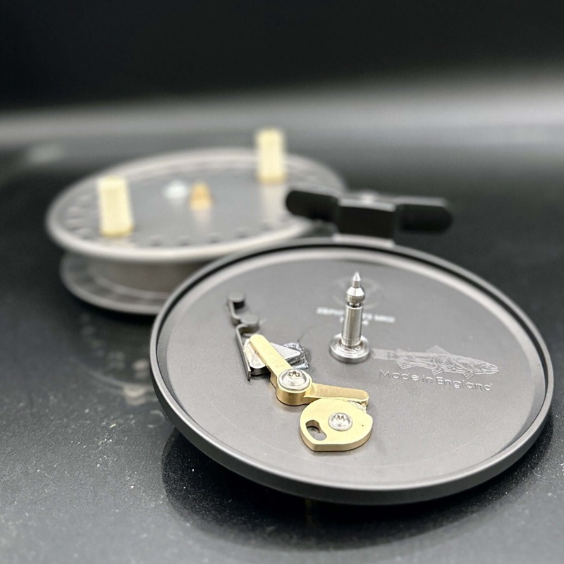 Zephyr-475 (4 3/4) Centerpin Reel. A true classic centerpin running on a phosphor bronze bushing & 17-4PH stainless steel spindle. Brass hardware and faux ivory handles. Hard anodised to Defense standards and machine engraved with individual serial numbers.