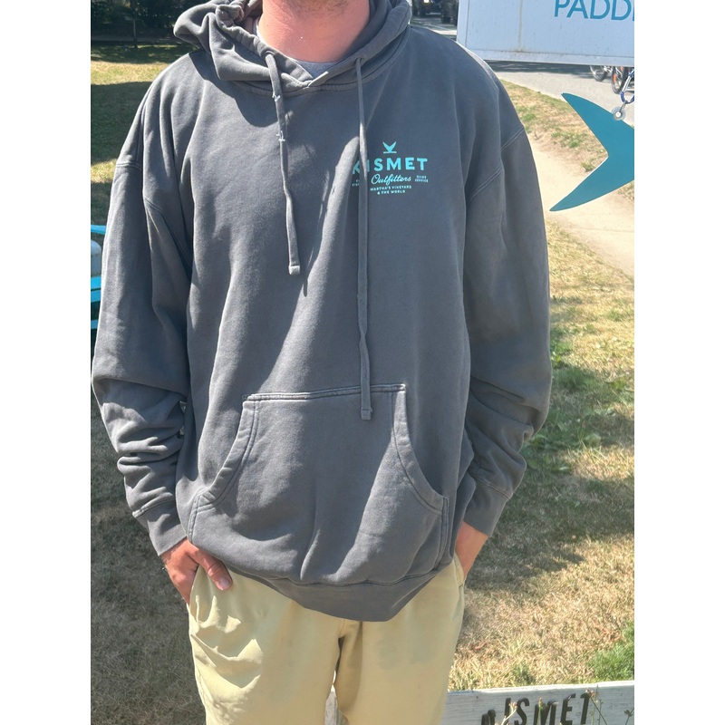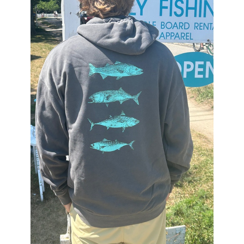 Kismet Outfitters’ Garment Dyed and Bomb Proof Hooded Sweatshirt featuring Martha Vineyard’s iconic gamefish.