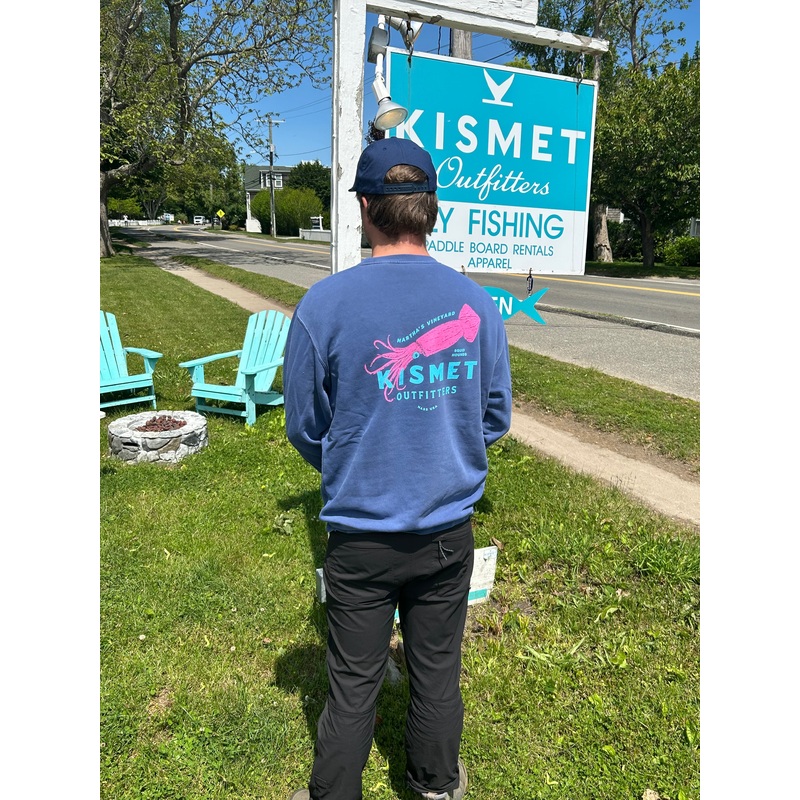 Show your love for your favorite MV shop in this wicked soft crewneck sweatshirt featuring an exclusive-to-Kismet squid design. Regular unisex fit.