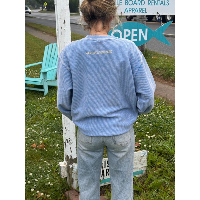 Soft and cozy Kismet branded crewneck. Wears like your old favorite and the perfect weight for cool breezy summer nights in Edgartown.
