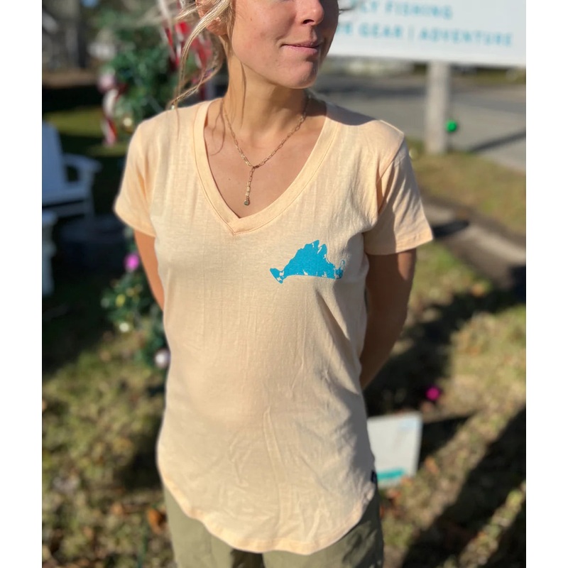 Kismet Womens Island V-neck|Peach|Harbor Blue|Small|Medium|Large|X Large