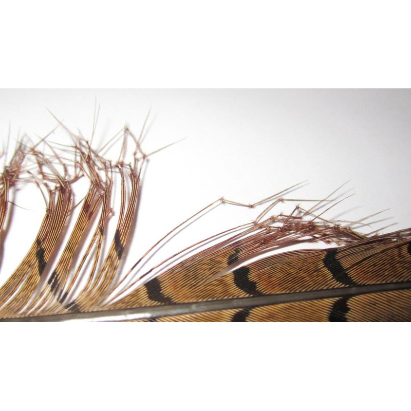 Cock Pheasant Knotted Tail – Centre tailpiece with each fibre double or single knotted. Supplied on the quill. Perfect for Legson an adult or drowned fly pattern.
