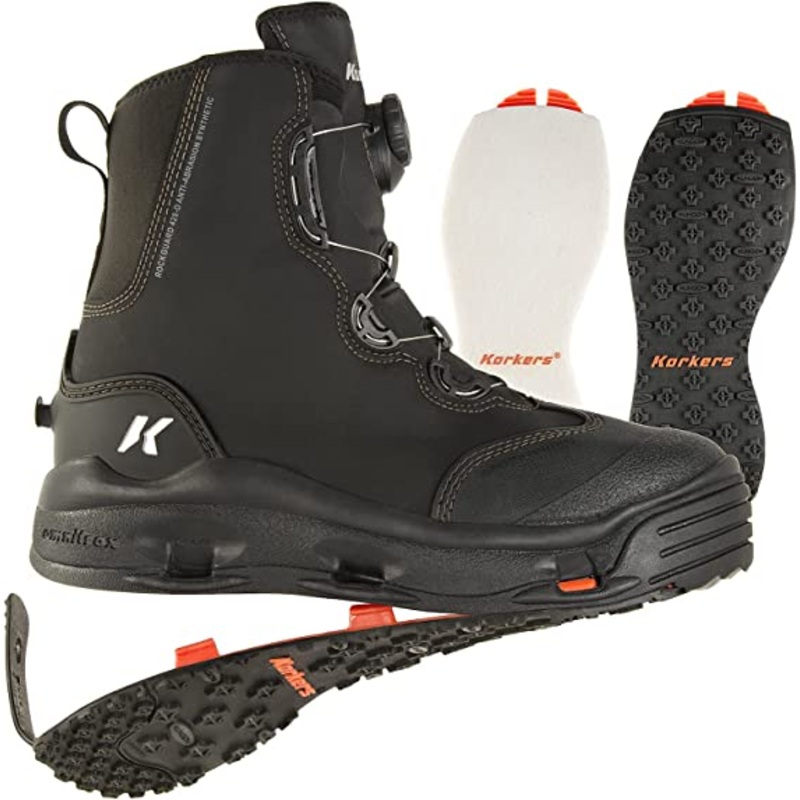Traction:OmniTrax Interchangeable Sole System adapts your traction to any fishing condition. Two outsoles included with every purchase.