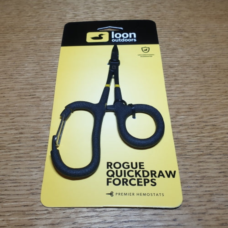 The Loon Rogue Quickdraw Forceps are the ultimate hemostat, thoughtfully designed from the tips to the jaws to the handle. A carabiner handle means you can store anywhere and the tight angles and engineered shape accommodate all fly sizes, allow for easy hook removal, and can crimp even the heaviest of barbs.