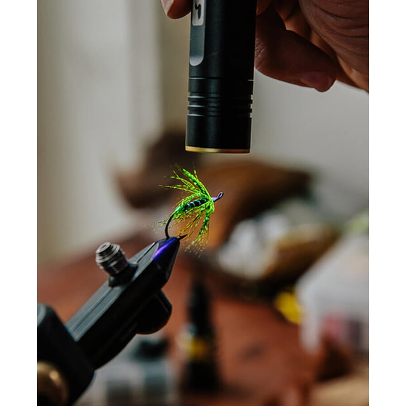 This powerful UV light is perfect for curing Loons UV resins. A push-button on/off and a powerful beam makes quick work of curing UV resin so you can tie more and fish more. One AA battery included.