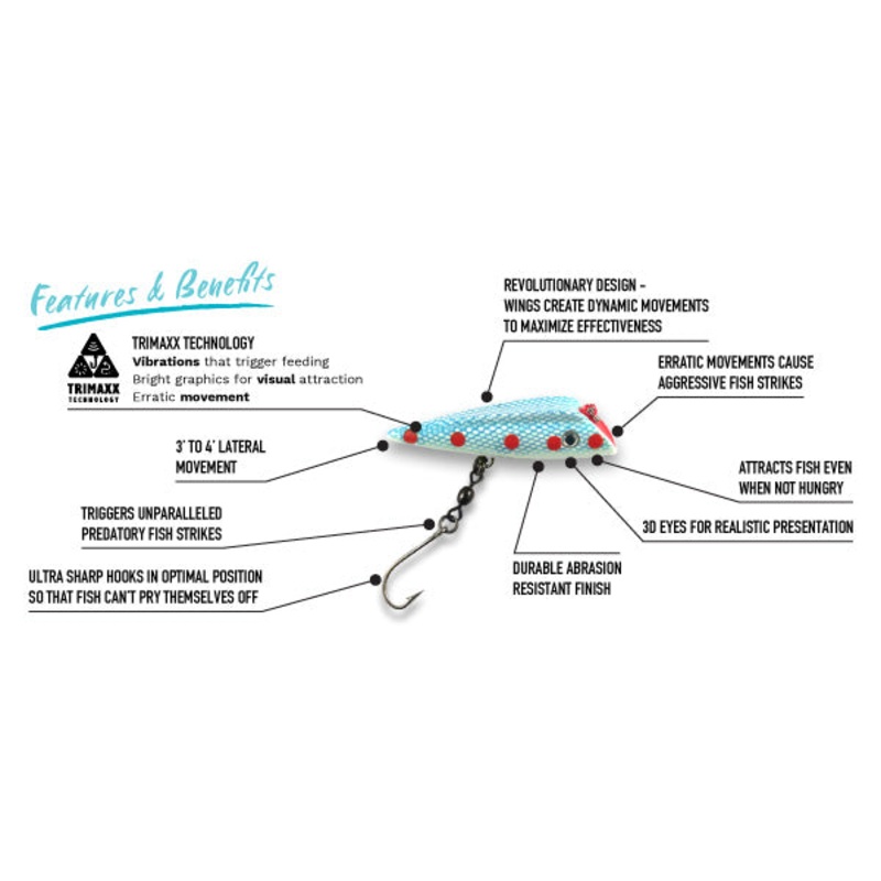 This plug allows you to achieve actions that have previously been difficult.You can feel the erratic darting action as you put this lure through its paces. Its an ideal bait that compels almost all predatory fish to bite, even when theyre not hungry, including Trout, Kokanee, Salmon, Lakers, Pike and Musky!