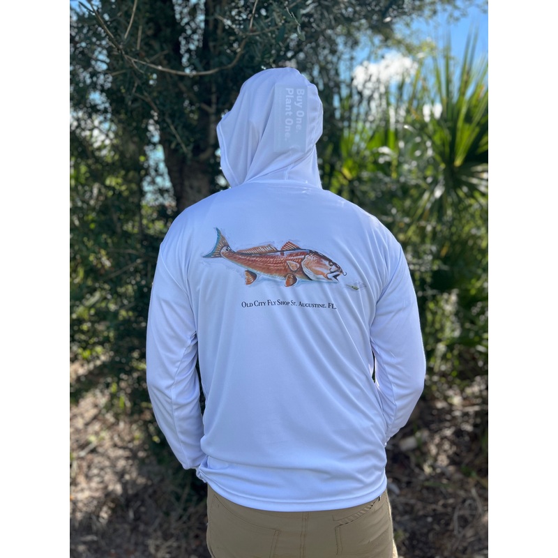 Our Mustache Redfish Hoodie Designed by Travis Luther and crafted by the Guys at Mang Gear. These UPF Hoodies will keep you cool and protected from the sun. All Shirt purchases go to the buy one plant one initiative to protect our coast lines and many others around the world.