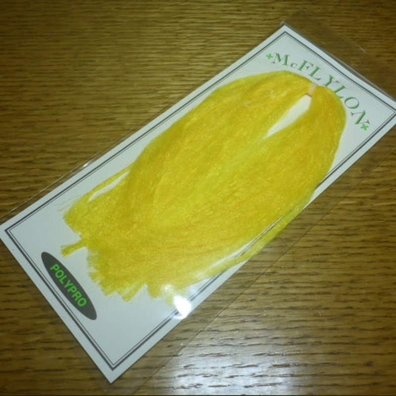 McFlylon is a bright, wavy polypropylene yarn made by McFlyfoam Products. It is great for many fly tying applications that require a light, floating material. It is also available in more colors than regular spooled polypro yarn. And better still, it doesnt come on a tiny card, you get a big hank of McFlylon to get you through a lot of dry fly wings per pack. A lot!