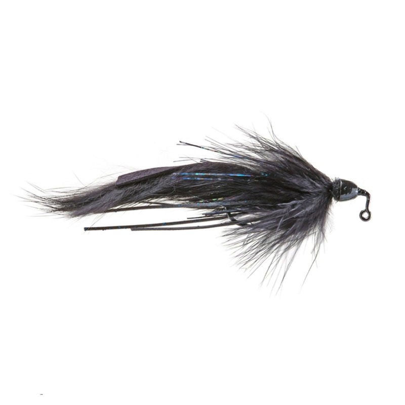 John buys his jigs, but he ties his flies, and he wanted a fly that would fish like his favorite bait. It had to “hop like a crawdad and swim like a streamer”. So, if one wants a fly to jig, tie it on a jig hook. John settled on the Gamakatsu 6041 90degree jig hook. After several attempts of tying and casting, the result is the Meat Whistle After testing it against his ol’ standby, the jig and Twintail Grub, John discovered he had a fly that fished as well as the con ventional lure. Now John fishes the ponds with fewer spinning rods but lots of Meat Whistle flies. (***Important: do not mistake the 3/0 for an overly large fly. It is not, and is THE best size for allaround largemouth flyrodding and can be cast with a 7 wt.) How to fish: a) Throw it to the bank and “hop and jerk” it down the slope. b) Just like a streamer, but always with pauses: strip, strip and drop. Always watch the line and leader for strike detection of the drop. c) hop and sit, especially with the crawdad color. This fly is constructed with material that is in perpetual motion. Do not consider this as simply a bass fly. It’s an effective “frog water” trout streamer. But whether fishing for bass, trout or whatever, there is really no wrong way a Meat Whistle.