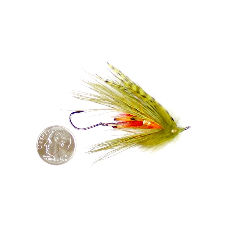 A mini version of Scott Howell’s Signature Intruder. A fantastic choice for Summer Steelhead or Trout Spey, as well as Winter Steelhead in low & clear conditions. Tied with a size 6 hook.