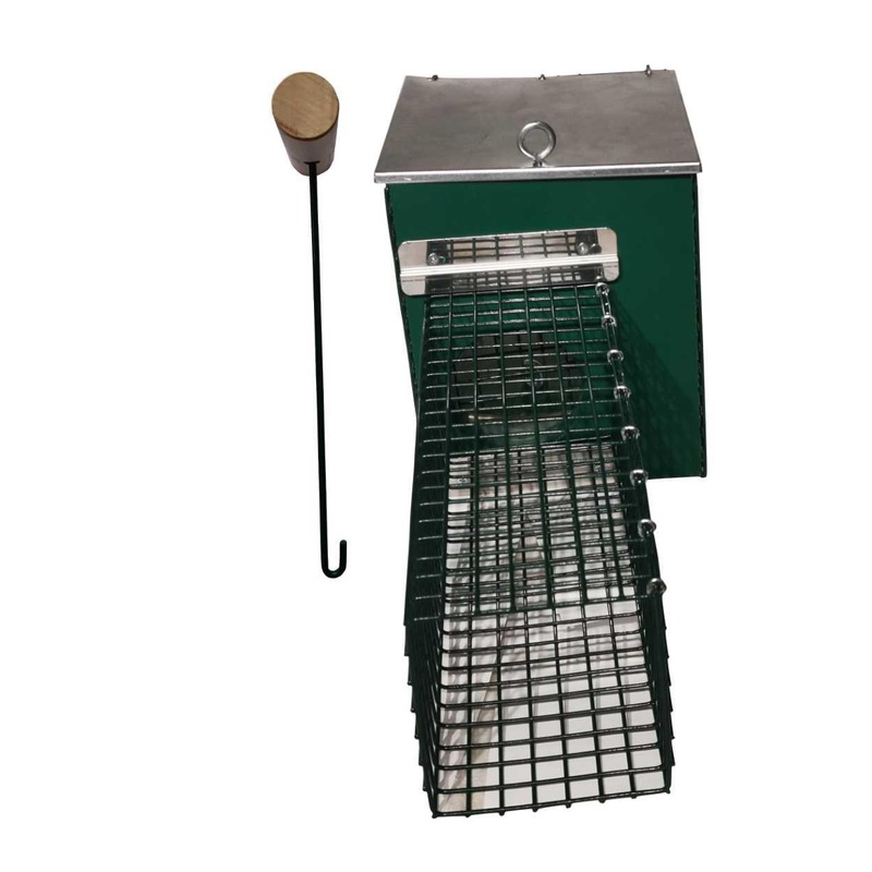 Prisen er inkludert gildrepinne for oppspenning av slagfellen. Inngangshullet er 7cm beregnet for mink (husk begrense bakkestaende feller med inngangslengde ref. regler for fangst). Praktisk hengslet telokk.