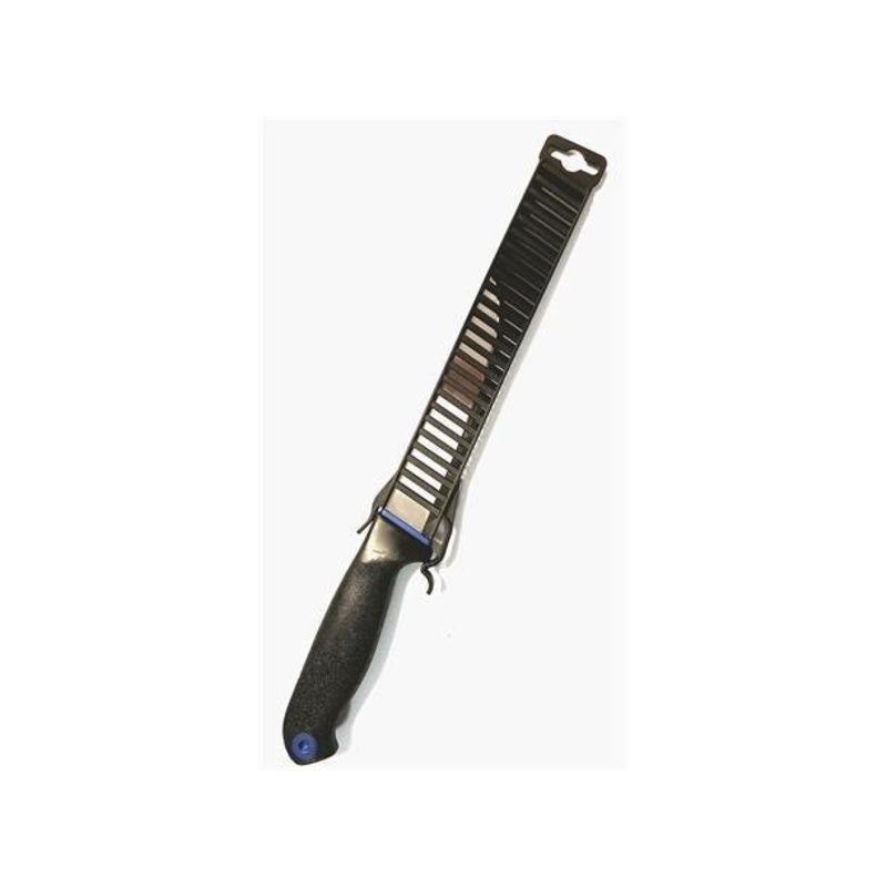 Ls ribbeslire i plast for beskyttelse av knivbladet. Sliren passer til mange ulike kniver med rett blad, f. eks: