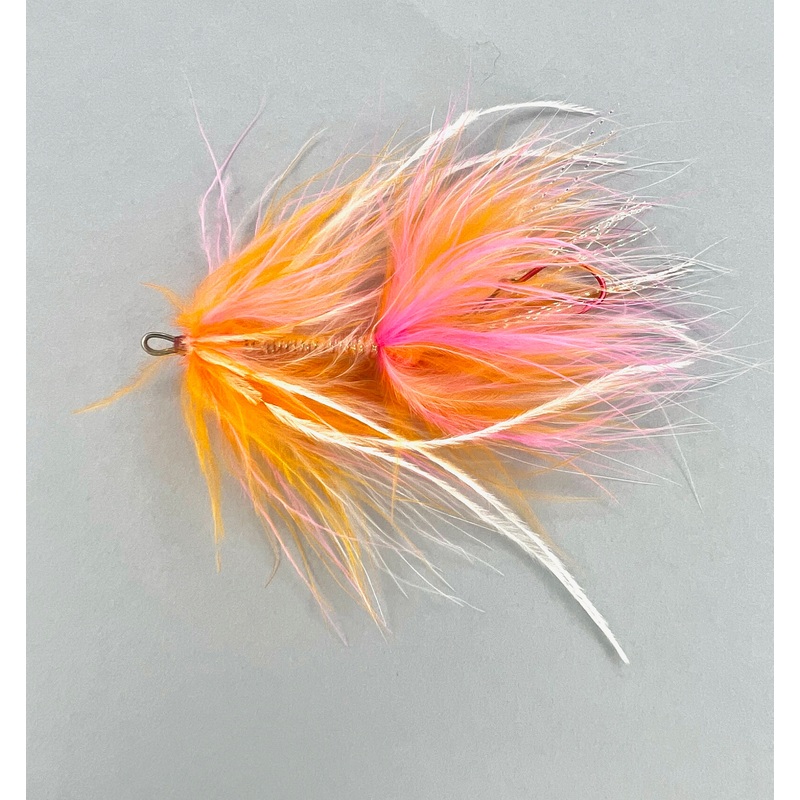 The Trailer Trash by Ken Morrish is a large, Intruder-like pattern that makes no apologies. Like many, Ken admittedly was inspired by the design features of the Intruder to create a large profile fly that has great movement and little bulk. At nearly 5 inches, this large creature swims frequently in Steelhead rivers around the West, at risk of being eaten in a violent manner. Pacific Salmon and Sea-run Browns also like the way it tastes.