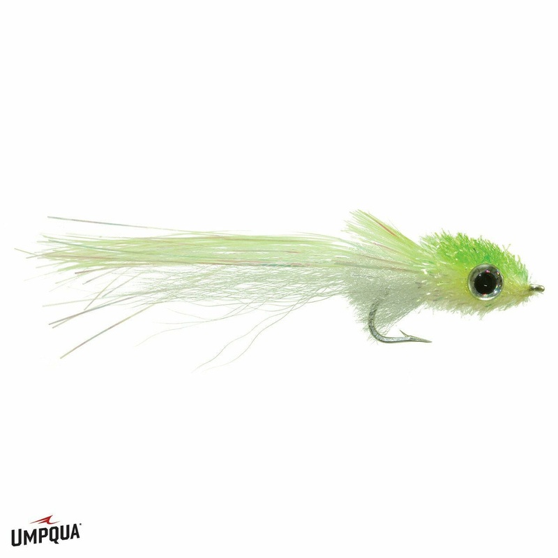 A few Midwest dealers, smallmouth professionals, have considered this their very best big baitfish fly of all time, especially the Gray/White. While it will definitely get smacked by all size fish, this is the one they throw for big, big smallies. They implored us to “bring it back”. This fly was originally very unlucky: hidden in allpurpose saltwater, introduced during the stock market crash and 911. It deserved better. It has caught literally everything in fresh and salt. But if your region has big smallmouth and largemouth, they will want to eat this fly.