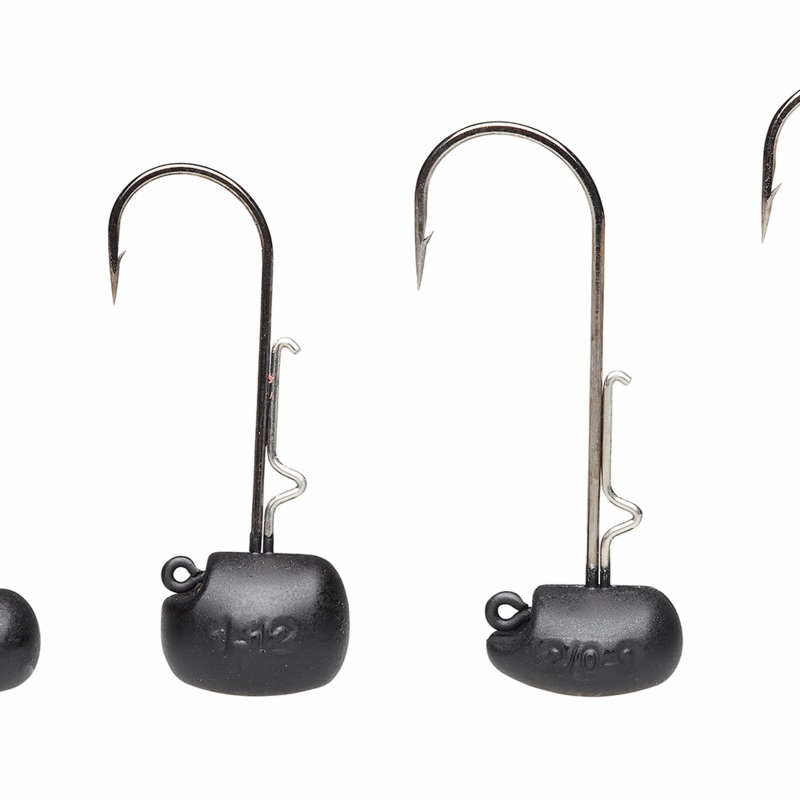Jigghuvud med avrundat huvud. Detta gr att kroken reser sig upp frn botten.