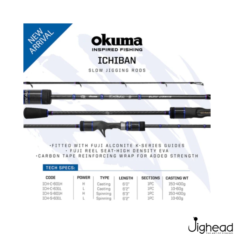 Are you ready to take your slow pitch jigging game to the next level? Introducing the new range of 1-piece Okuma Ichiban Slow Pitch Jigging rods, designed for the ultimate action when using light to heavy slow-pitch jigs. These rods feature moderate tips that transition into the backbone mid-way through for optimal performance. Built for durability with a high carbon blank reinforced with carbon slit tape wrap, the Ichiban series can handle PE ratings from 1.5-3.0 with ease. Fish at depth with a lighter braid without sacrificing fish landing ability. And with durable Fuji K Series, anti-tangle guides with Alconite inserts, these rods are ready for any challenge.