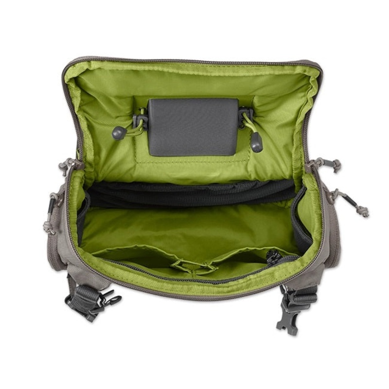 The Orvis Chest Pack puts your fly-fishing workflow right in front. This capacious 4L chest pack provides a remarkably streamlined platform to easily manage on-the-water tasks with innovative new features and exceptional ergonomic design. The 100% recycled CORDURA ECO Chest Pack has the new Tippet Whippet recessed docking station with tippet bar included for instant, fixed, and fumble-free access for up to six spools. Large main compartment storage with wide opening lid that flips down, out of the way to easily access contents. Zippered security pocket with key fob, front and side stretch mesh pockets for small sort storage and additional backwall slip pockets. Front drop-down zippered pocket with internal elastic mesh slip pockets, and two external side pockets, one with a zinger/nipper pass-through port. Forceps dock on the front shoulder strap. Strap system is a comfortable and airy foam and mesh construction with a net D-ring on the top rear. Bug-Out Backpack-compatible for placement on the front straps of the backpack. Weight: 400g/.88 lbs. In sand. Shell: 100% recycled CORDURA ECO 600 denier polyester with strategic TPU coating. Liner: 100% recycled 200 denier polyester. Spot clean. Imported. Tippet and accessories not included.