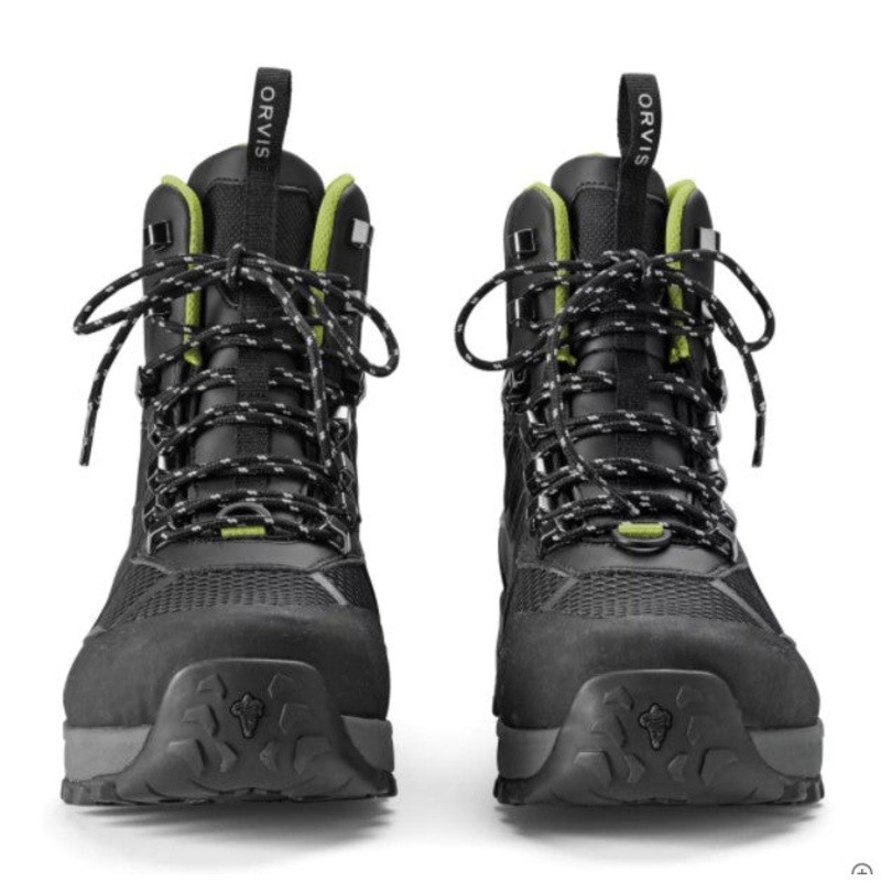 In an industry-first collaborative effort with Michelin, Orvis introduces the PRO Wading Boot. Built on an outsole compound specifically designed for fly fishing, this revolutionary new sole design is an industry-disrupting advance in wet rubber traction. The Michelin Outdoor Extreme outsole offers 25% better abrasion resistance and a resounding 43% improvement in wet rubber traction over the competition. Using Michelin tire geometry, it offers a wider footprint for stability, a higher ratio of surface contact, and a lug pattern that reduces shock and improves pressure distribution. The two-layer midsole has a co-molded ESS plate that provides improved stud retention and torsional stability. The shock-absorbing Phylon midsole improves “river feel” and compresses less than standard EVA midsoles. Orvis partnered with Ortho-Lite to create a 3D molded X25 insole designed for high-impact sports, delivering maximum comfort and arch support. An industry-first cast PU upper eliminates seams while providing a zoned cage for added stability, grip, and extreme abrasion resistance without the added bulk. The boot is higher cut for ankle support and lined with closed-cell foam. Scratch rubber at the toe cap and heel for abrasion resistance, an oversized heel pull for easier on-and-off, and tightly woven laces reduce broken laces. Men’s whole sizes 7 – 14. Imported.