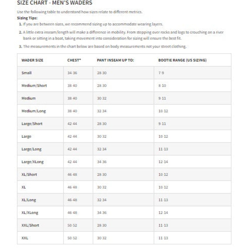 - Wader weighs approximately 52 oz. (medium regular).