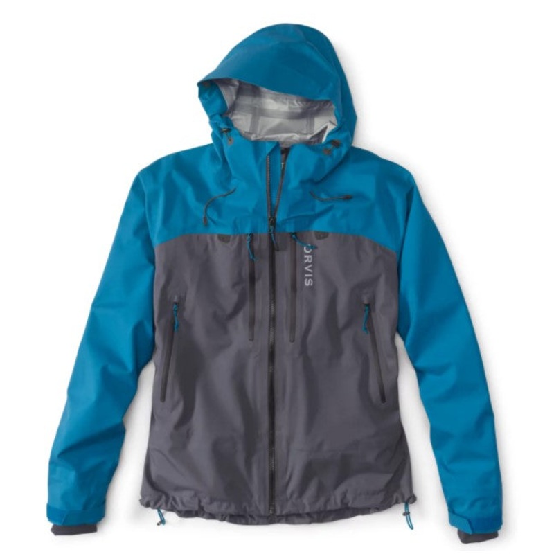 A minimalist Jacket with the Ultralight Wading System that offers solid protection against wind and rain that can be carried in a small daypack or even the Guide Sling Pack. Most wading jackets are heavy and bulky, but this new approach to foul weather protection offers more comfort, freedom, and a significant reduction in bulk. Combined with other components of the Orvis Ultralight Wading System this is an extremely comfortable and streamlined approach to wading and weather. It doesn’t have to be heavy to offer great waterproof and windproof protection. Two-way stretch, three-layer shell fabric with 20K Waterproofness / 30K Breathability rating offers the durability you need with the comfort and freedom you desire. Moves with you while keeping you dry and comfortable over a wide range of temperature and activity ranges. Fully-taped seams for added weatherproofing enhance the longevity of the jacket. DWR finish repels water from the fabric surface. YKK AquaGuard water-resistant zippers are flexible, easy to slide, yet keep the elements out. Two front storage pockets and side zip pockets feature power-mesh pockets for breathability, less bulk, and more pocket room when you need it. Integrated Dolphin Skin Cuffsystem prevents water from running up the arm when reaching into the water to release fish. Rubberized tabs for tool docking eliminate punctures in the fabric when hanging tools, and offer greater security for tools. Internal power-mesh pocket for added storage. Three-way adjustable storm hood with laminated brim. Rear yoke D-ring for the net. Nylon with PU lamination. Washable
