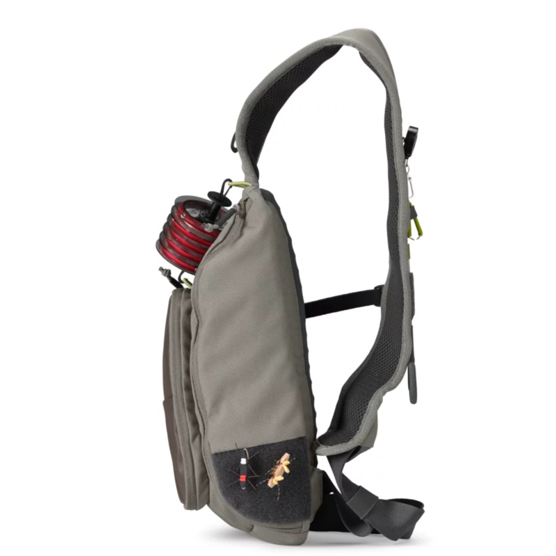 There are times when all it takes is a fly box, a couple of spools of tippet, and a couple of tools when you know where they are and exactly what they’re eatingthe 100% recycled ECO CORDURA Orvis Mini Sling Pack offers simple, intuitive accessibility while staying completely out of your way when fishing. Main body storage pocket with internal drop pockets and a zippered pocket. Smaller main body zippered pocket with organizational drop pockets for smaller items. Loop tippet bar attachment. Front strap zinger docking station, fly patch, forceps attachment point, and rear D-ring for net attachment. Zinger/nipper pass-through. Adjustable sternum strap. Left shoulder design frees up casting arm and shoulder. Weight 300g/.66 lbs.