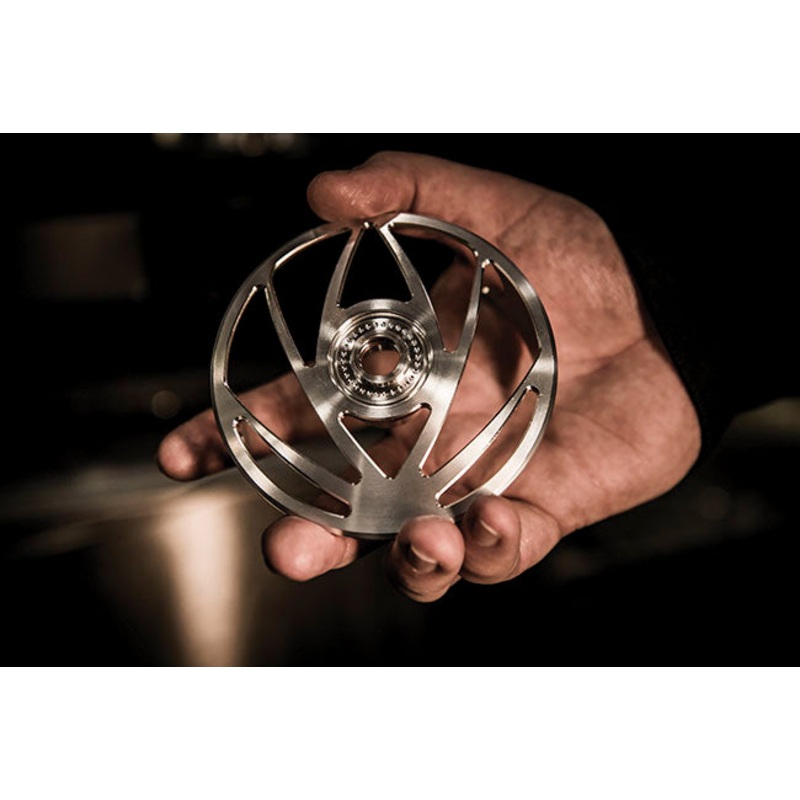 A technologically superior reel conceived and designed from the ground up and built in New England by American craftsmen to battle angry fish and laugh in the face of corrosive saltwater environments. The Mirage features a sealed and maintenance-free carbon and stainless steel disc drag system with an aggressive knurled drag knob that goes from zero to full drag in a single drag knob rotation. Patent-pending ball and ramp drag mechanism provides a smooth turning drag that follows a non-linear curve as the drag knob is turned to give smoother adjustments in the fishing and fish-fighting range. The reel is a super large arbor for increased retrieve rates and reduction in line coil. Machined in the USA from strong, yet lightweight 6061 T6 aluminum barstock. Ergonomically designed machined aluminum handle. Quick release spool easily converts from left to right-hand retrieve. Military-spec type III hard coat anodizing. Titanium shaft adds strength without additional weight. Fully radiused reel foot prevents kinked leaders. Low-profile counterweight won’t catch fingers or fly lines. In pewter, midnight black.