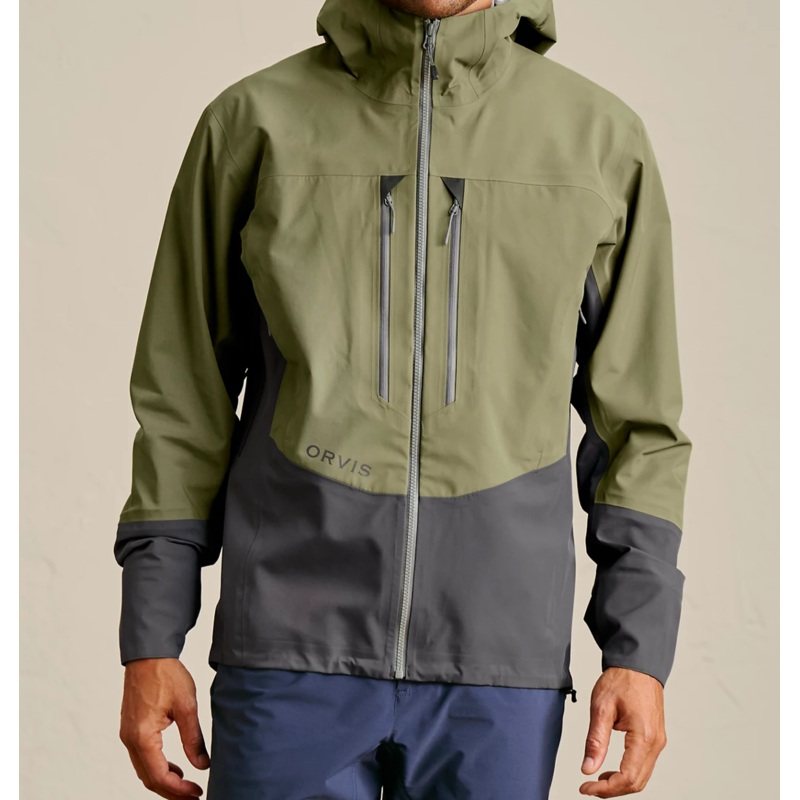 Spend more time stalking fish and less time worrying about bad weather with our Mens PRO Fishing Jacket, our ultimate protection from the elements. Even when youre zipped up tight, the abrasion- and puncture-resistant 4-layer stretch CORDURA fabric is breathable, so you wont overheat. Look for must-have details like YKK AquaGuard zippers, fully taped seams, and neoprene cuffs to seal out the moisture. Pit zips give you unrestricted access to your PRO Bib or Waders without taking off your jacket. And it has two large chest pockets to stow and protect what you need on the streamin any weather.