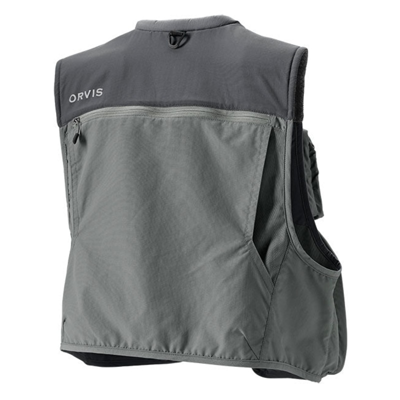 The PRO Vest is designed to carry everything you need, but is very light and breathes well for comfort. It is built of light, abrasion-resistant nylon with a DWR coating. The fitted design is built to conform to the body. The shoulders have a lofted spacer mesh of nylon and spandex. There are 18 pockets10 exterior, 6 interior, and 2 rear ergonomically designed with new materials to provide organization coupled with smooth workflow on the water. The two lower main pockets offer compression-molded construction that add rigidity. The upper pockets are medium size, both with Orvis custom hideaway tool port underneath two fly-drying patches. The rear pockets offer a large pass-through game-style pocket under a full-zip rear pocket with mesh panel divider. Other features include multiple daisy chain gear loops, elastic loops to attach tippet bars, an adjustable closure that slides vertically for a custom fit, padded collar for comfort, internal webbing hanging loop, and a tri-ring net holder centered on the rear yoke. Shell: nylon. Collar and lower pocket: nylon/spandex. Upper interior mesh: polyester. Lower interior mesh: nylon/spandex. Molded pocket base: compression-molded EVA. Washable. Imported.Shell: nylon. Collar and lower pocket: nylon/spandex. Upper interior mesh: polyester. Lower interior mesh: nylon/spandex. Molded pocket base: compression-molded EVA. Washable. Imported.