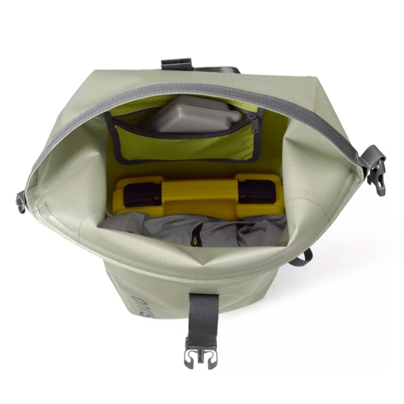 Our PRO Waterproof Roll Top Backpack 20L is constructed from 840-denier, abrasion- and puncture-resistant ballistic nylon, and then coated with .1mm TPU on both sides of the fabric. If theres a more waterproof and more thoroughly seam-sealed pack collection on the planet, weve yet to see it. Twenty liters of storage give you ample protected space in this Roll Top for fishing gear, a jacket, and a PB&J sando or three, now in a stripped-down version that does away with all unnecessary weight for those who require waterproof storage on the move. Gear stays bone dry and access is easy thanks to a generous opening with an interior weve brightened up by adding a high-vis chartreuse color. A three-way top closure gives you compression options and allows you to scale the pack up or down based on the volume of gear inside. Minimalists and those who fish from small inflatables, this Roll Top is your daily driver, made even lighter with the addition of accessory docking zones on the breathable mesh shoulder straps that fit comfortably without soaking up water and weight.