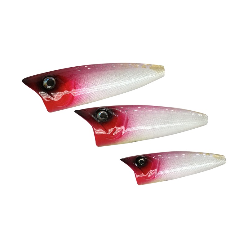 Sold as a set this design has a rear weight fixed in between two hollow cavities for a balanced fish and easy casting. The elongated front nose of the Louder splashes water in a fan type spray that extends several feet around the bait. This gives an illusion of a school of little bait on the surface, which triggers strikes.