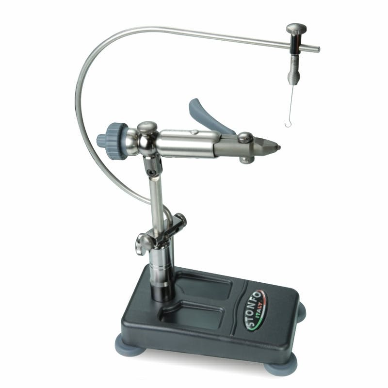 Stainless steel tool adjustable in every direction. Fits all vises with stem from 8 to 10 mm. This tool is designed to be used as a parachute attachment or a bobbin rest. Its rounded shape provides ample room to work.