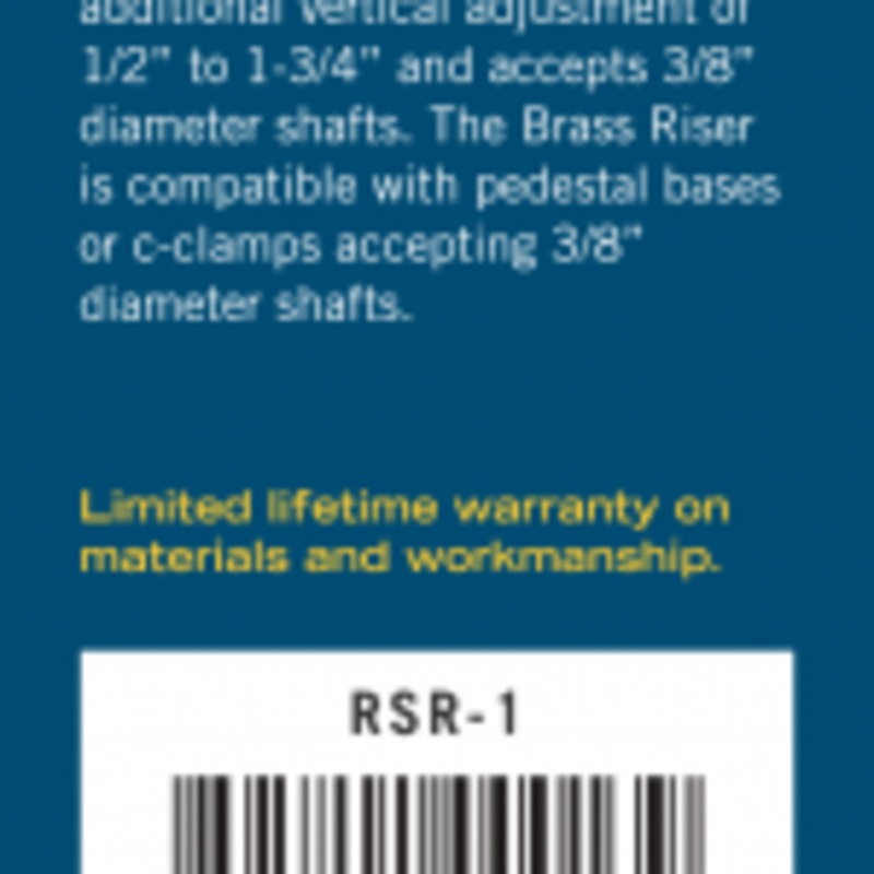 The PEAK Riser will work with our Pedestal Base or C-Clamp and will accept vises having a 3/8 diameter riser shaft. The Riser allows you 1-3/4 additional height adjustment. If you use a pedestal base, leaving the riser attached to your vise and disassembling it from the base will leave you with a flat base for easier transportation.