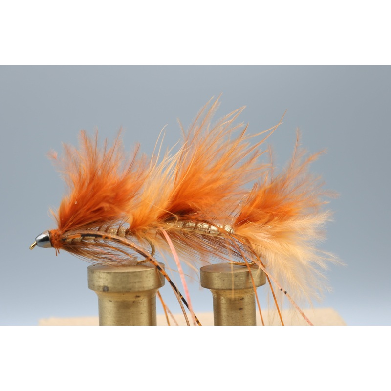 Hot Head Squirrel Leech|Natural/Orange Bead|Black/Chartreuse Bead